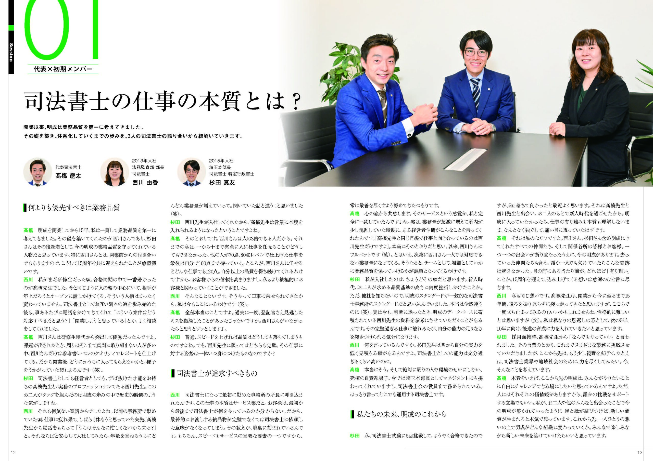 今回ご紹介するのは、明成を創業から支えてきた代表髙橋と、事業拡大に尽力してきた社員による対談記事を取り上げます。